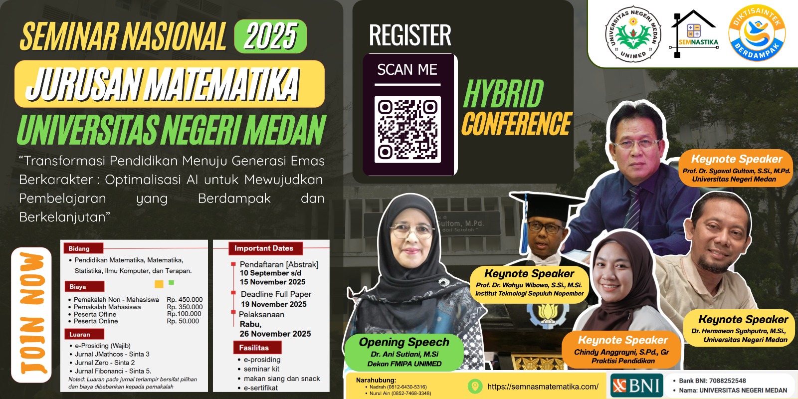 Submit Paper Anda di Seminar Nasional Jurusan Matematika 2026, Universitas Negeri Medan. Paper akan di index google scholar dan paper terbaik akan di publish pada Jurnal Nasional Terakreditasi
